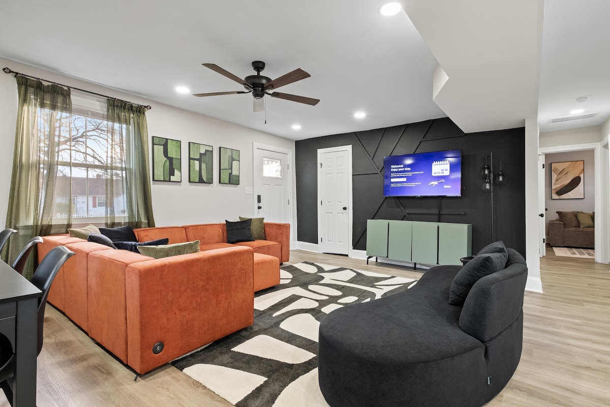 Насолоджуйтеся цією стильною, просторою та розташованою в центрі міста в RVA! Ця перлина з однією спальнею може похвалитися двоспальним ліжком King Size, повноцінним диваном-ліжком і двоспальним диваном-ліжком, дивовижним 150-дюймовим проектором, пов 'язаним із потоковими застосунками, і поп-куроркою, щоб зробити ідеальні нічні враження від фільмів із сім' єю та друзями. Це місце знаходиться в 4 хвилинах їзди до центру міста RVA, в декількох хвилинах їзди від Карітауна, VCU, річки Джеймса та острова Браун, Глен-Аллена тощо! Ресторани, бари знаходяться в декількох хвилинах. Доступна парковка