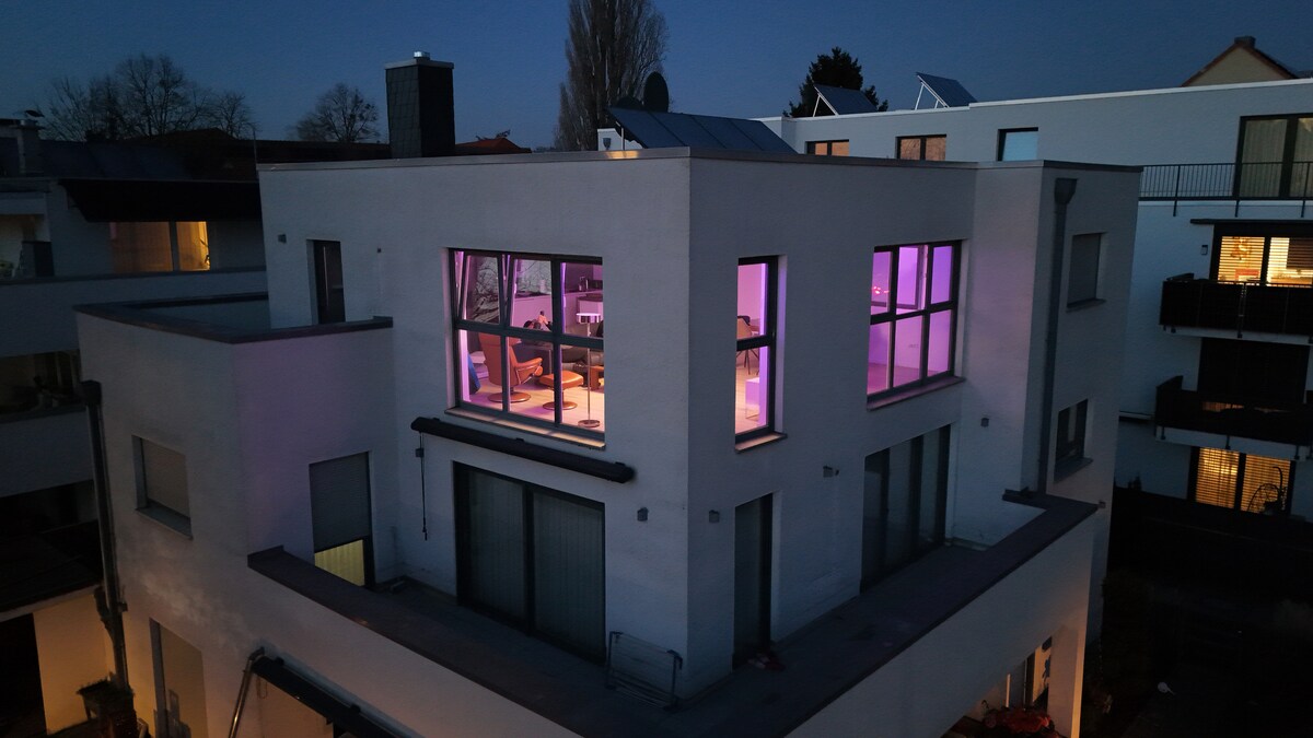 Ексклюзивний пентхаус на верхньому поверсі на 2 рівнях зі спеціальними архітектурними елементами в колишньому повітряному притулку. На комфортній житловій площі 140 кв. м вас чекає розкішний сучасний інтер 'єр із високоякісною та повністю обладнаною кухнею. Життя в бункері дуже унікальне. Вдихайте історію архітектури будівлі. ВЕЧІРКИ та ГРУПОВІ ЗАХОДИ суворо ЗАБОРОНЕНІ.