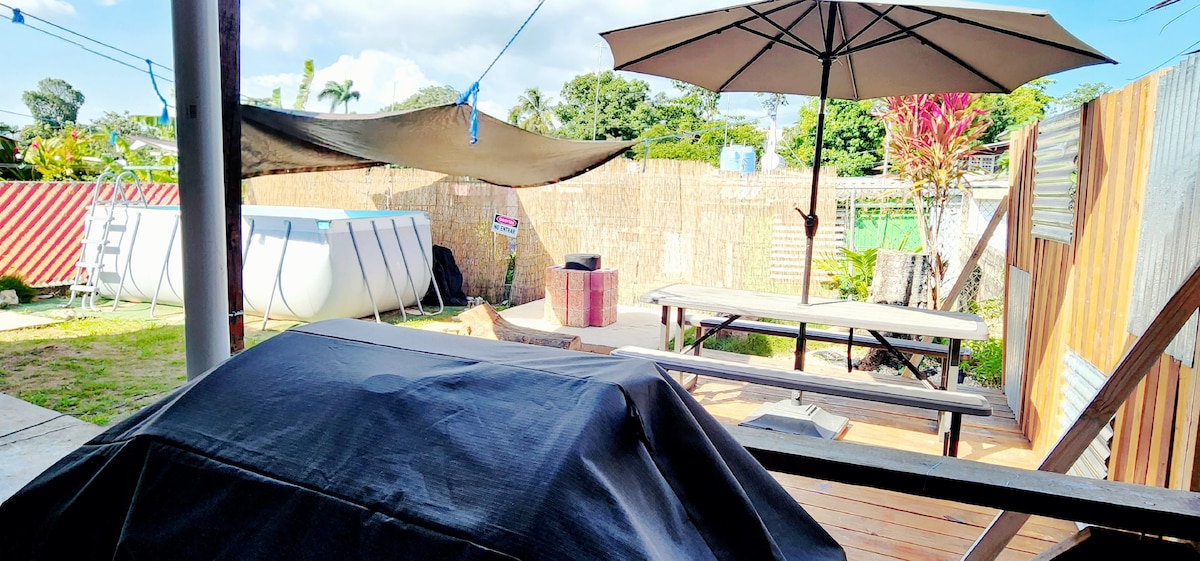 Відчувайте себе як удома та відпочивайте в цій 2 спальні з двома ванними кімнатами з 1 1/2 ванною кімнатою зі зручним диваном у вітальні гостьового будинку. Насолоджуйтеся джакузі, ігровою зоною, альтанкою з баром - готуйте коктейлі та гарним барбекю на грилі. Розташований за 8 хвилин від центру Маягуєса. Ви будете поруч із магазинами, історичними місцями, ресторанами (ми рекомендуємо знаменитий ресторан La Jibarita), бари, музику, чудове нічне життя, супермаркети тощо. Ми знаходимося за кілька секунд від лікарні Bellavista.