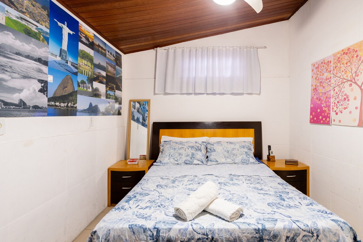 Помешкання дуже чарівне, комфортне та обладнане кухнею та аксесуарами, телевізором, кондиціонером та Wi-Fi. Він має окремий доступ і знаходиться дуже близько до тераси з басейном і широким видом на Христа-Искупителя на гору Цукрової Голови. У зоні басейну є душ та велика ванна кімната з душем та гарячою водою. Ми також ділимося пральнею. Вулиця добре обслуговується автобусами, таксі та UBER, які через наше розташування в кінцевому підсумку знаходяться на рівній відстані.