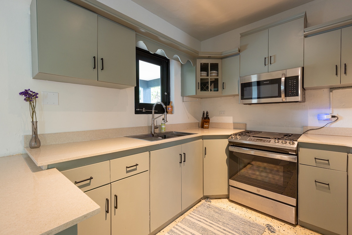 Цей самодостатній міні-будинок 10 x 16 футів - це унікальне помешкання на горі з усім необхідним для відпочинку далеко від дому. Звідси відкривається дивовижний вид на Національний тропічний ліс і берегову лінію. Сонадора-Крік межує з 7,5 акрами заднього двору, і доступ до нього можна отримати за допомогою кількох доріжок у помешканні. Невелика кухня повністю обладнана для вашої зручності. Він знаходиться в 29 хвилинах від поромного терміналу до В 'єкесу/Кулебри, в 28 хвилинах від Семи морів і в 41 хвилині від Ель-Юнке.