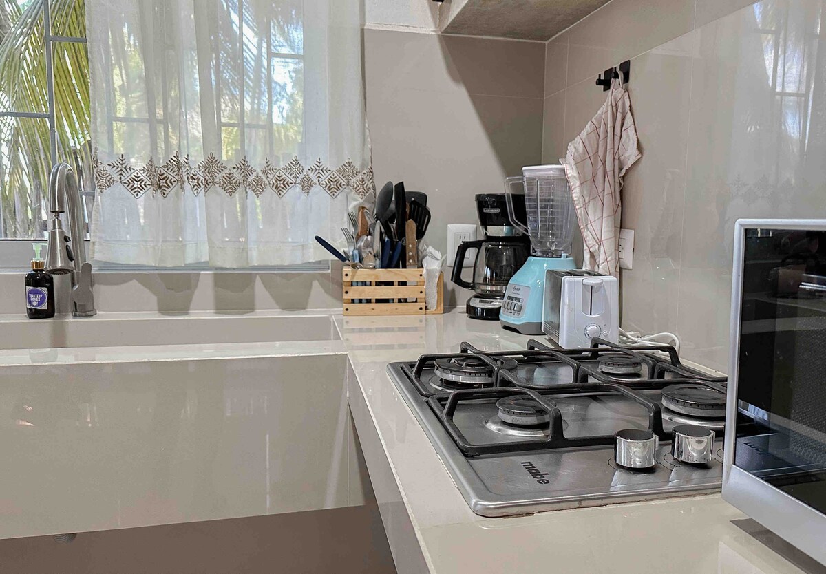 Відпочиньте в наших стильних і затишних будиночках в Ель-Куйо, лише за декілька хвилин ходьби від пляжу. Відпочиньте на надзвичайно зручному ліжку розміру «king size», розслабтеся в гамаку на антресолях і насолоджуйтеся приготуванням їжі на повністю обладнаній кухні. Ванна кімната зручно розташована на першому поверсі. Вийдіть на власну терасу й насолоджуйтеся спокійною природою – ідеальним місцем, щоб сповільнити темп, відновити сили й насолодитися невимушеним ритмом узбережжя Юкатану