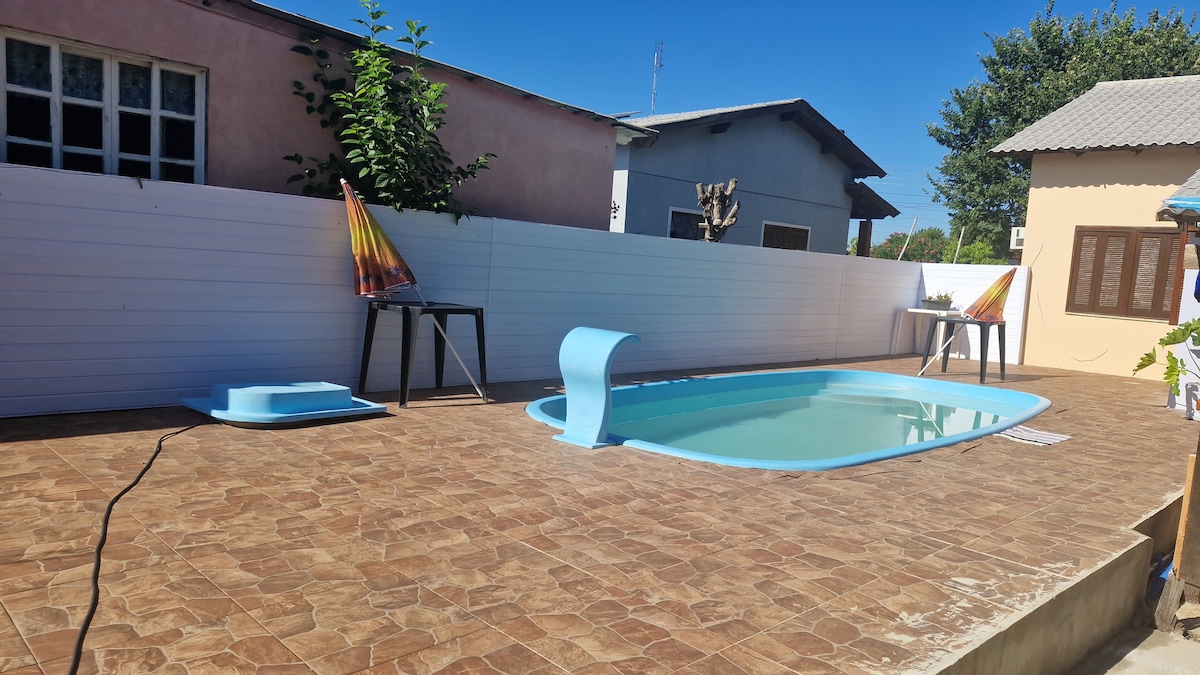 casa completa, próximo a Br 290, bairro tranquilo e seguro, com espaço para seu lazer e ambientes climatizados com Wi-Fi disponível em todos os cômodos e uma ampla piscina para desfrutar seu momento de lazer e descanso!