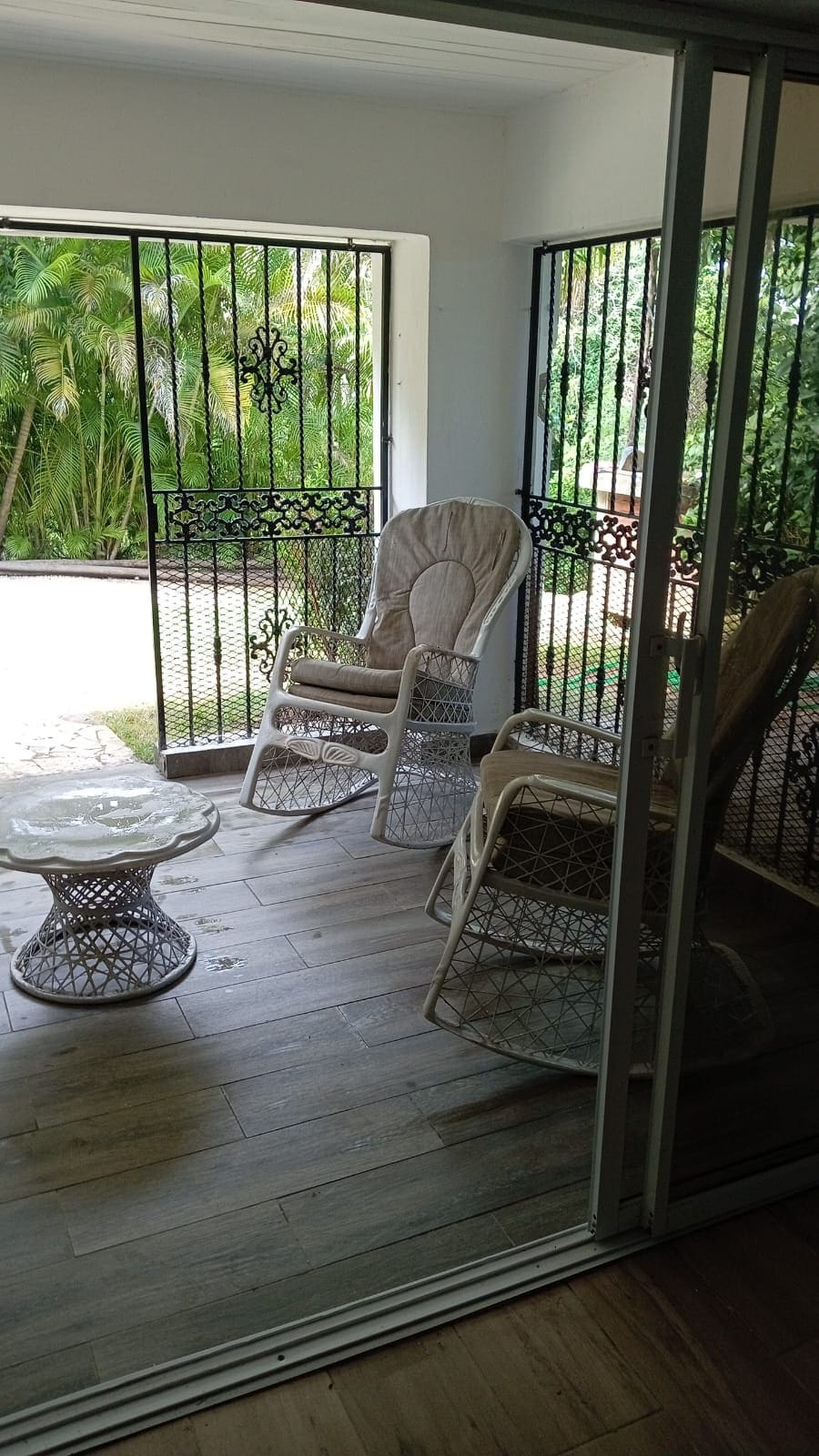Ojo no tocar Las Orquideas Ni fumar dentro de la casa! Es una hermosa casa tipo villa donde podrás disfrutar de un gran espacio , 2 habitaciones cada con con sus baños y aire acondicionado 1 con dos camas full y otra con 1 cama Queen. 1 colchon de aire , cuenta con una capacidad para 10 personas. hermosa sala con aire acondicionado y comedor , desayunador , cocina , piscina , BBQ , Kiosco cámara de seguridad Carro en renta Por si quieres ir aventurar vía WS 829*980*4853