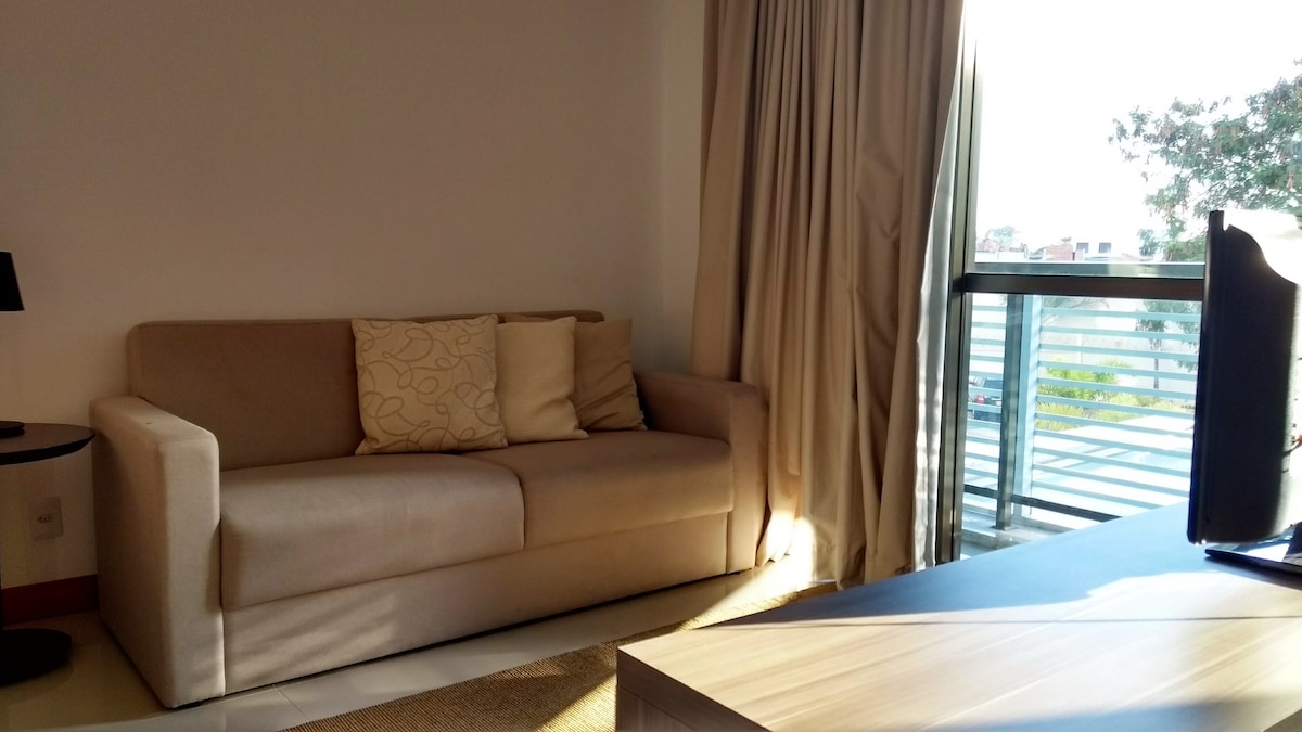 Просторий лофт перед пляжем і недалеко від Olegário Maciel, де розташовані ресторани, аптеки, банки. Кондомініум Barraleme з цілодобовим консьєржем і охороною, рестораном, пральнею, басейном, сауною , гідромасажем, гімнастикою , гаражем . Зручна квартира з прекрасним видом на Педра-да-Гавеа, Wi-Fi, кондиціонер (РОЗДІЛЬНЕ місце). Моє помешкання підходить для пар, бізнес-мандрівників і пар з двома дітьми.