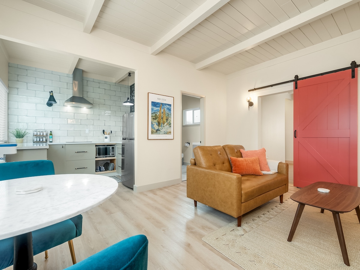 Цей нещодавно відремонтований будинок із 1 ліжком і 1 ванною кімнатою середини століття елегантно мебльований і оформлений з урахуванням усіх зручностей. Це помешкання ідеально підходить для мандрівників, які шукають стильне та комфортне помешкання для відпочинку. Ліжко ✔ king-size ✔ Красива кухня ✔ Спеціальний робочий стіл Душова головка✔ високого тиску (рідкісна знахідка) ✔ Самостійне прибуття Патіо ✔ на відкритому повітрі ✔ Пральна/сушильна машина всередині блоку ✔ Тихий район ✔ Ресторани та супермаркет в межах 1 милі