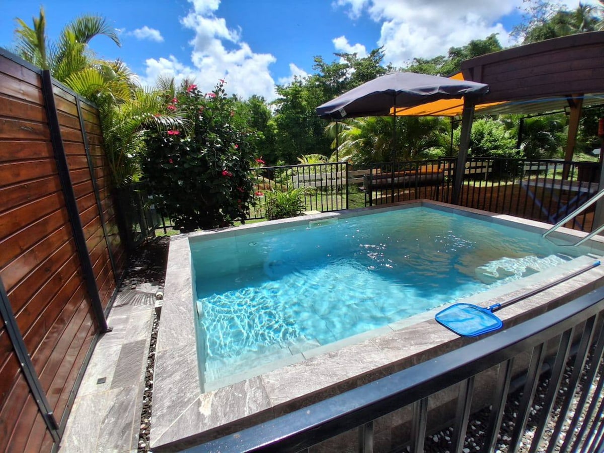 Ласкаво просимо до бунгало Ti Coco, розташованого на природі в Рів 'єр-Салеє. Ідеально підходить для 2 осіб, які шукають спокою, і пропонує басейн із солоною водою з підігрівом, терасу площею 42 м² з вітальнею на відкритому повітрі, шезлонгами. У помешканні є повністю обладнана кухня з обідньою зоною на відкритому повітрі з барбекю та планчею. Кімната зі смарт-телевізором. Ванна кімната з душем. Посудомийна машина, пральна машина, кондиціонер та Wi-Fi для вашої зручності.