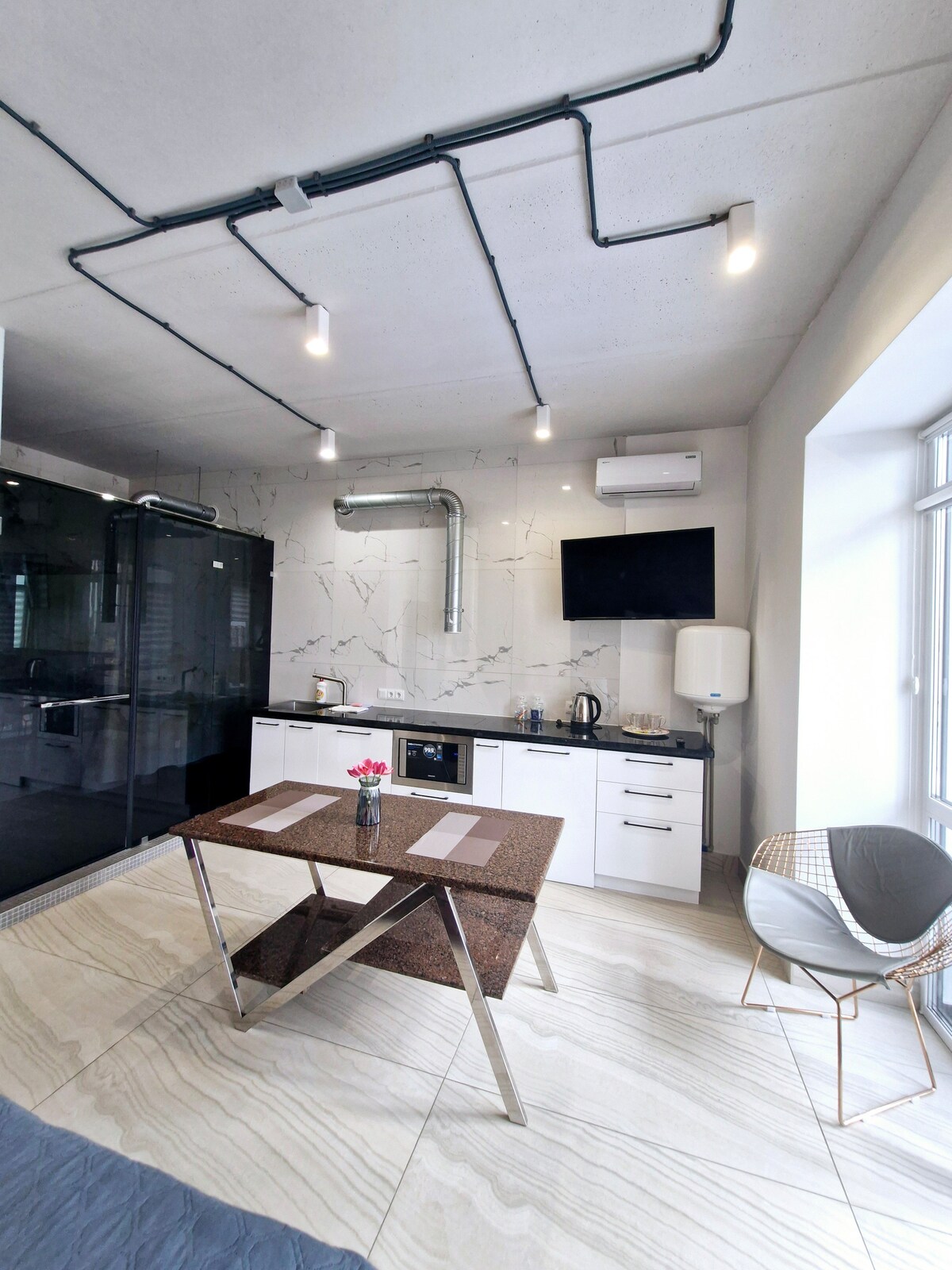 Насолодіться стильною атмосферою цього помешкання в центрі міста. Нова квартира з дизайнерським ремонтом для комфортого перебування наших гостей. Кімната укомплектована двухспальним ліжком з ортопедичним матрацом та зручним диваном. Для гостей завжди біла, свіжа постіль. В кімнаті є сматр телевізор і Wi-Fi. Кухня укомплектована столом, мікрохвильовкою, варочною поверхнею та холодильником. Є посуд та електрочайник з кавою та чаєм для гостей.Є охорона і стоянка для машини та зарядка електромобі.