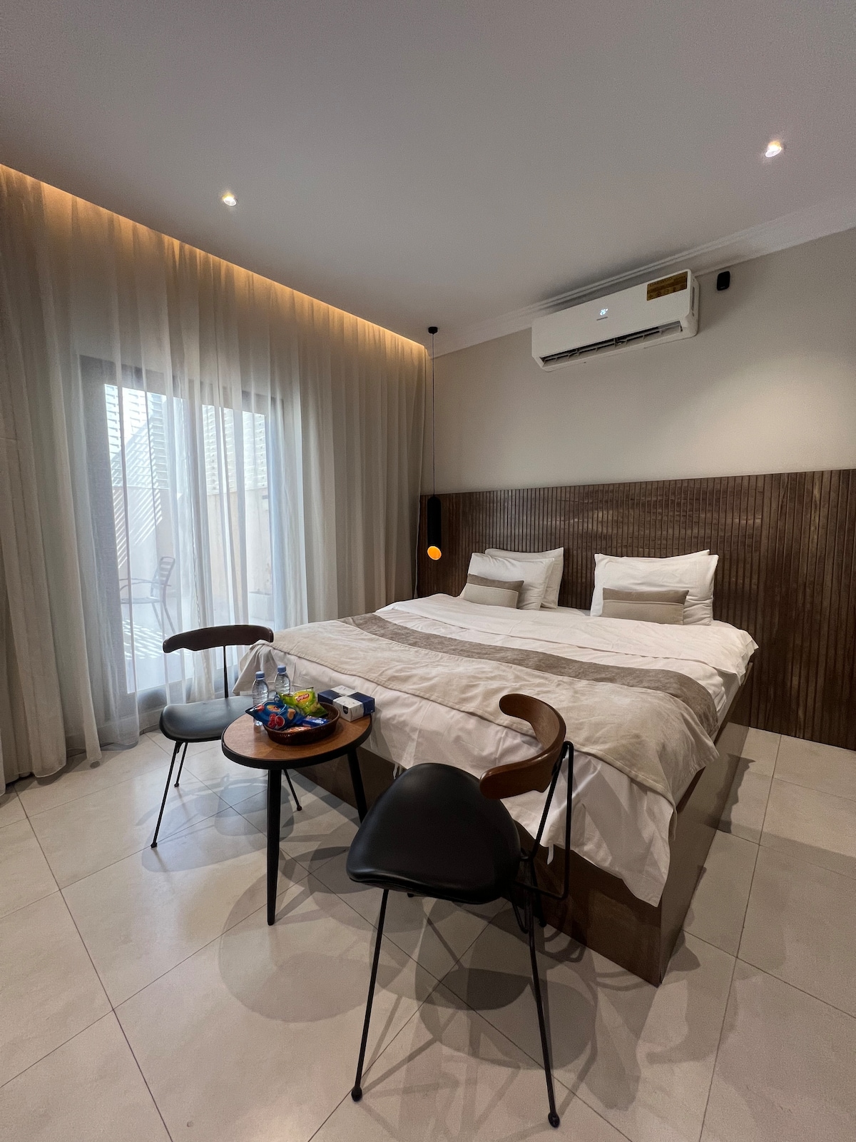 Сучасна квартира, призначена для виняткового перебування, розташована в одному з найкращих районів Ер-Ріяда з приголомшливим видом на KAFD. До послуг гостей зона відпочинку на відкритому повітрі з екраном та проектором для приємних вечорів. Для вашого комфорту ліжко має високоякісний додатковий шар довжиною 14 см. «Ми також пропонуємо послуги з координації заходів для особливих випадків (включаючи торт та аксесуари) за додаткову плату за попереднє бронювання, що забезпечує незабутні враження »