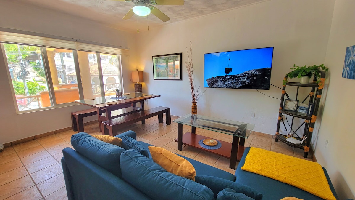 Насолоджуйтеся перебуванням завдяки зручності кондомініуму 5 у торговому центрі West Bay Mall Playa. Тихий, безпечний і розташований всього в 2 хвилинах ходьби від райського пляжу Вест-Бей. Ідеально підходить для дайверів, сімей з 4 або 5 осіб, любителів водних видів спорту або просто тих, хто шукає спокою та перебування в межах досяжності всього за кілька кроків. El Condo 5 має електричний генератор, цілодобова охорона, а вниз по сходах - банкомат, міні-маркети, кафе, сувенірні магазини тощо.
