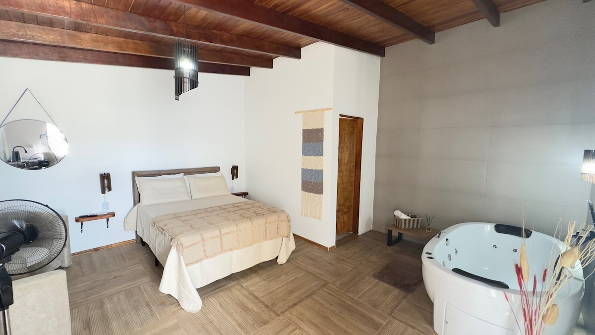 Розслабтеся в цьому тихому й елегантному помешканні, спроектованому, щоб насолоджуватися перебуванням у повній мірі. Моноабієнти Natureza, крім того, що вони обладнані всім необхідним, щоб почуватися як удома, у них є джакузі, ванна кімната та повністю обладнана кухня.