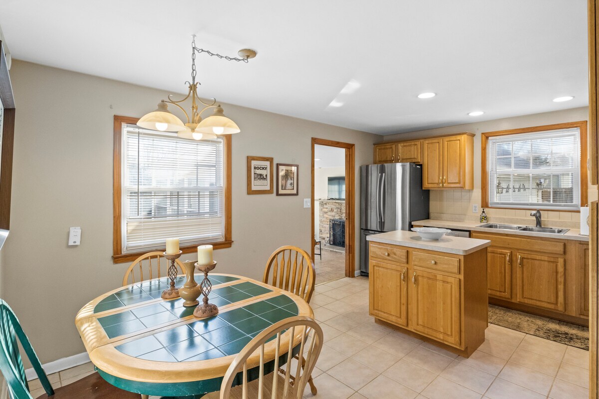 Ця чарівна Кейп-Код, розташована на затишній вулиці з деревами, більша, ніж здається! Кухня-їдальня повністю обладнана приладами з неіржавної сталі для приготування їжі та розваг. У сімейних зонах є два телевізори. У яскравій сонячній кімнаті є затишний кам 'яний газовий камін. Звідси вийдіть на терасу та огороджуйте задній двір. У гаражі є один транспортний засіб, за необхідності є зарядна станція для електромобіля. Під 'їзд має подвійну ширину і підходить для великогабаритних/робочих транспортних засобів та/або причепів.
