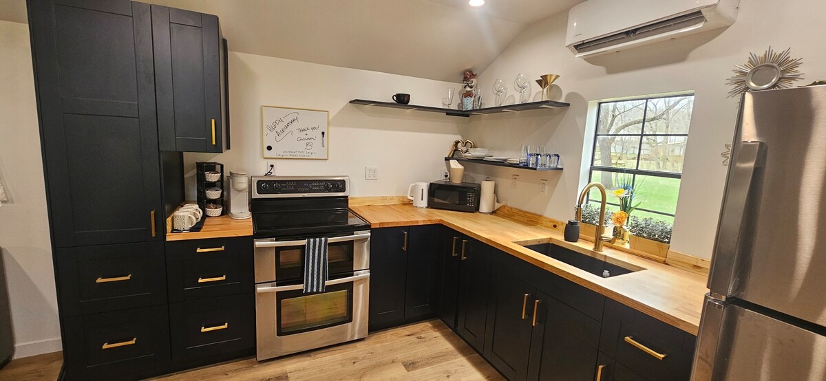 Closest sleeping to historic Renfro Valley Barns Music Venue! 300 yards door to door! Beautiful 1 bedroom cabin with a modern flair. Sit on the large front porch rocking chairs, listening to the flowing creek or gather around the fire pit. Everything you need for a week away or a quick stop over to break up a longer journey. Just 3 minutes off interstate I75 exit 62. 5 minutes to Lake Linville 18 minutes to Wildcat Off Road Park. <1hr to Cumberland Falls. Dogs Welcome with pet fee