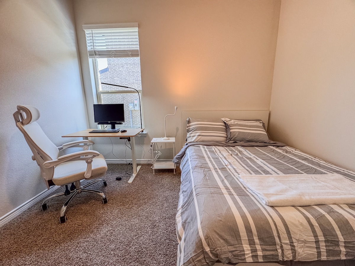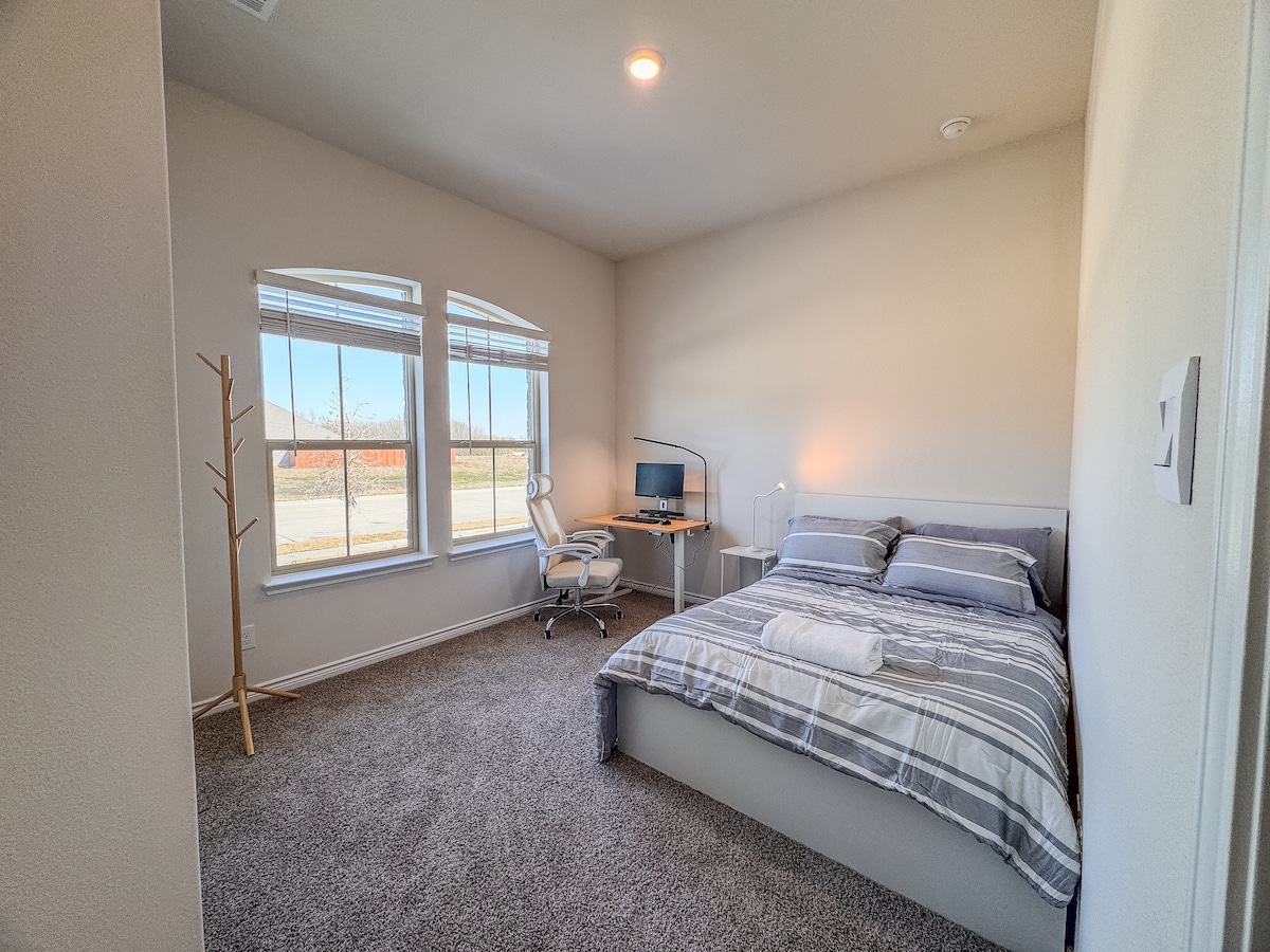 Welcome to your peaceful getaway! Located in a quiet newly built family-friendly neighborhood, this cozy home is a short walk to the community pool. Enjoy indoor fun with foosball, pool, air hockey, and board games. Complimentary snacks and coffee are provided. Relax on the outdoor patio with a BBQ, dining area, and fireplace—perfect for evenings under the stars. Ideal for short visits or long stays, this home offers comfort, entertainment, and relaxation for all.