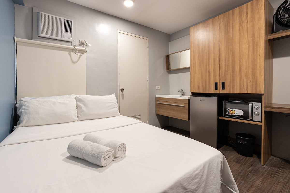 Spacious 27.23 sq.m. (~293.10 square feet) cozy and relaxing private hotel suite at 14F of LANCASTER HOTEL MANILA near MRT Shaw, Shangrila Mall, Greenfield District, Megamall, Star Mall EDSA Shaw, and WCC. See More... 🟩Cozy Hotel Interior Ambiance 🟩Queen Size Bed + Orthopedic Mattress 🟩Hot Bath Tub 🟩FREE Pool Access at Rooftop 🟩500 MBPs Ultra-Fast Wifi Speed 🟩43" UHD 4K Smart TV + Soundbar for Cinematic Sound 🟩Netflix + HBO Max + Disney Plus + Prime Video + Spotify 🟩Bluetooth Speaker