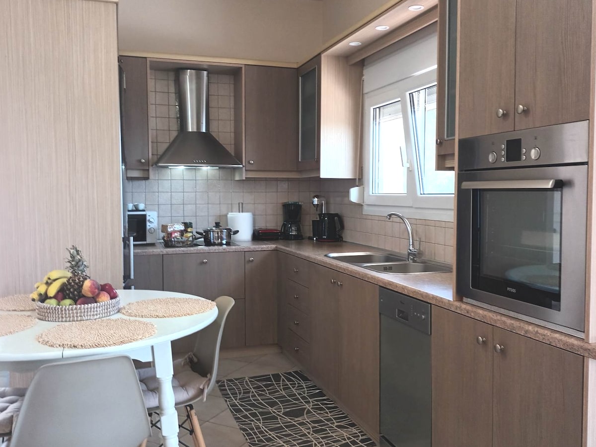 Enjoy your stay in a stylish home in Rodia, a peaceful village just minutes from Heraklion. This spacious, fully furnished house offers modern comforts and a relaxing atmosphere, ideal for couples, families, or small groups. Step onto the large private veranda and enjoy stunning views, perfect for morning coffee or evening relaxation. Private parking is available, and the location combines tranquility with easy access to the city and nearby beaches.