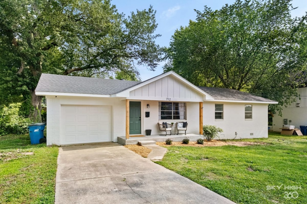 Welcome to our Bike & Hike Friendly Retreat located just steps away from downtown and the beautiful Crystal Bridges Museum of American Art. This stylish home boasts a luxurious interior, featuring hardwood floors and quartz countertops. Step outside to explore nearby bike trails or stroll to The Momentary, an art space for contemporary visual & performing arts. Whether you're in town for business or pleasure, this chic farmhouse is the perfect place to call home during your stay in Bentonville.