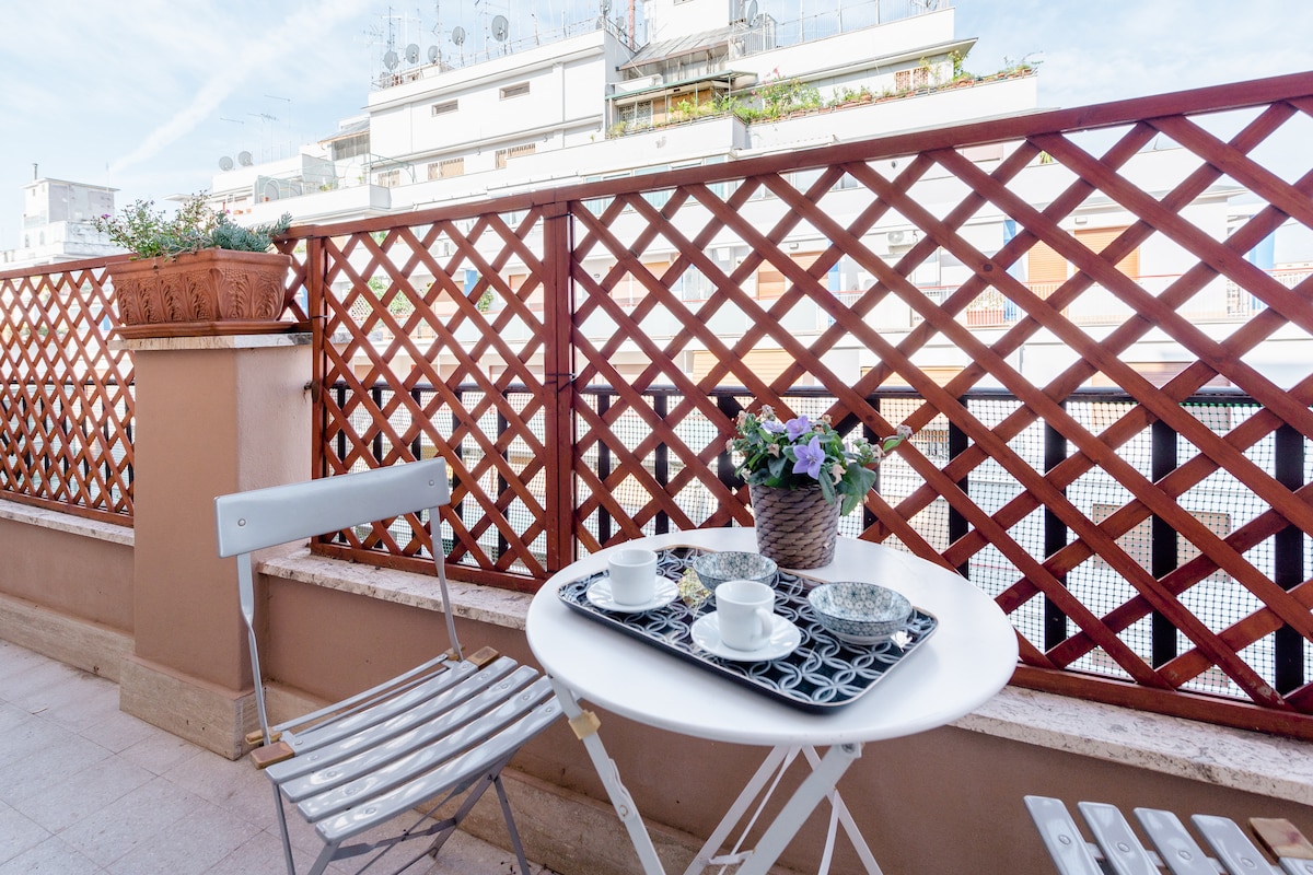 Візьміть ванну римського світла в цій яскравій, жвавій та барвистій квартирі з дизайнерськими меблями та терасою, яка проходить по всьому будинку для ексклюзивного використання. Світло, безсумнівно, є елементом, який відрізняє цей будинок, який знаходиться на п 'ятому поверсі стародавнього палацу та має терасу вздовж всього будинку, де ви можете спокійно поснідати, щоб насолодитися приємним келихом італійського вина після гарного дня навколо стародавніх вулиць «вічного міста».