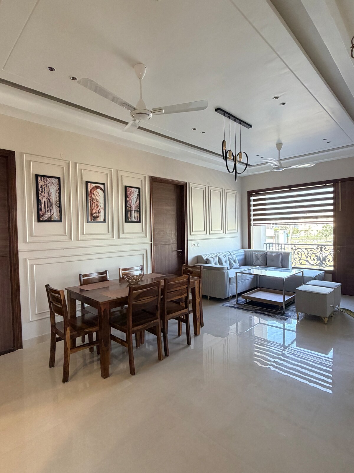 Welcome to Apricot Garden Courtyard, a serene garden home in DLF Hyde Park, Chandigarh. Built around a private courtyard and sunlit interiors, the space blends exposed concrete floors, raw textures, and earthy tones with modern comfort. Ideal for couples, creatives, and remote workers who value privacy and calm. Step into a plant-lined courtyard. Work with high-speed internet. Unwind with air-conditioning, hot showers, power backup, and kitchen essentials. Earthy in feel. Modern in function.
