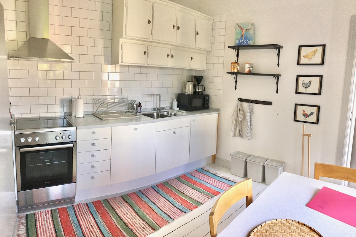 Ми відремонтували старий курячий будинок до невеликого затишного прибудинку. Будинок має кімнату та розташований самостійно в нашому невеликому заміському будинку, і ми маємо 12 курей та петуха, які вільно пасуться на шматочку поруч з будинком. Ферма родом з 1914 року і оточена полями та скелями з видом на корінні гори. На території помешкання ви також знайдете наше кафе та фермерський магазин, в якому продається кава, пиріг, бутерброд, бранч тощо. Графік роботи: п 'ятниця-неділя, 10: 00-17: 00