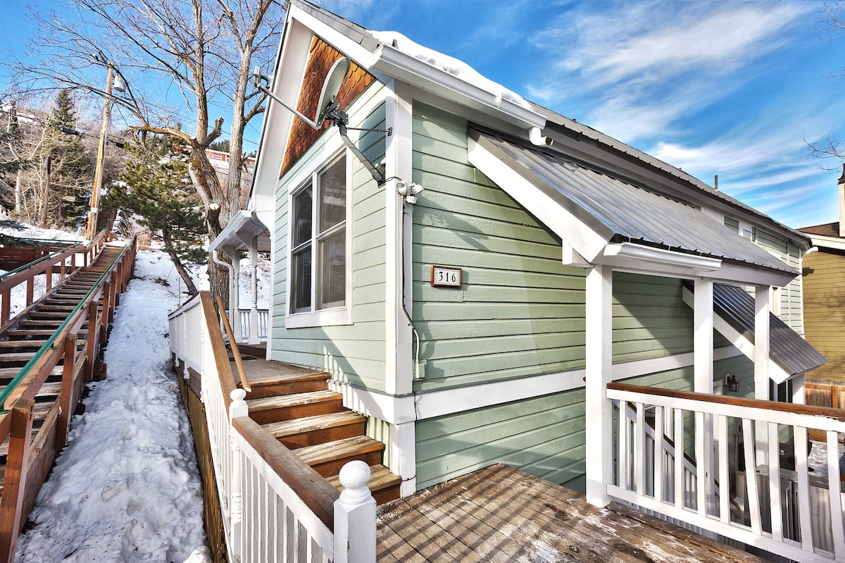 Located in Old Town, with great views of the mountains and Main Street, the Yellow House is a historic, restored 2BR/1BA miners cabin that you'll fall in love with. Walking distance to Main St as well the Old Town Transit Center, and a short drive to all of the resorts. Come home at the end of a day on the mountain and relax on the porch in your private yard, soak in the hot tub and and enjoy the views of Old Town from this cabin charmer!
