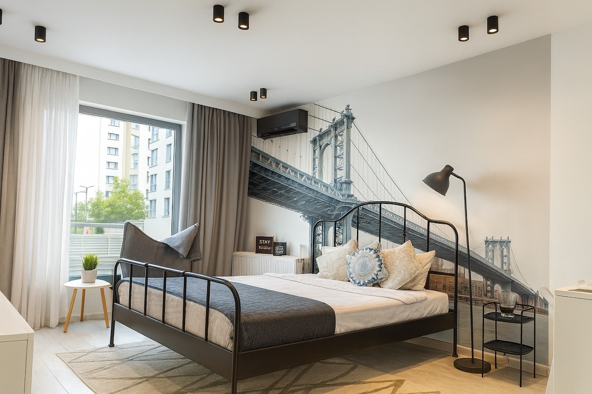 Experience the charm of our urban loft in the heart of the city! Enjoy the peace in our elegant bedroom, with wide windows that fill the room with sunlight, and settle into a luxurious marble bathroom. Located in a lovely neighborhood, this inviting space offers a fully equipped kitchen, a relaxing living area, and a small balcony. Perfect for the modern traveler who values style and comfort. Book your stay - delight in the simple luxuries and make this loft your personal hideaway.