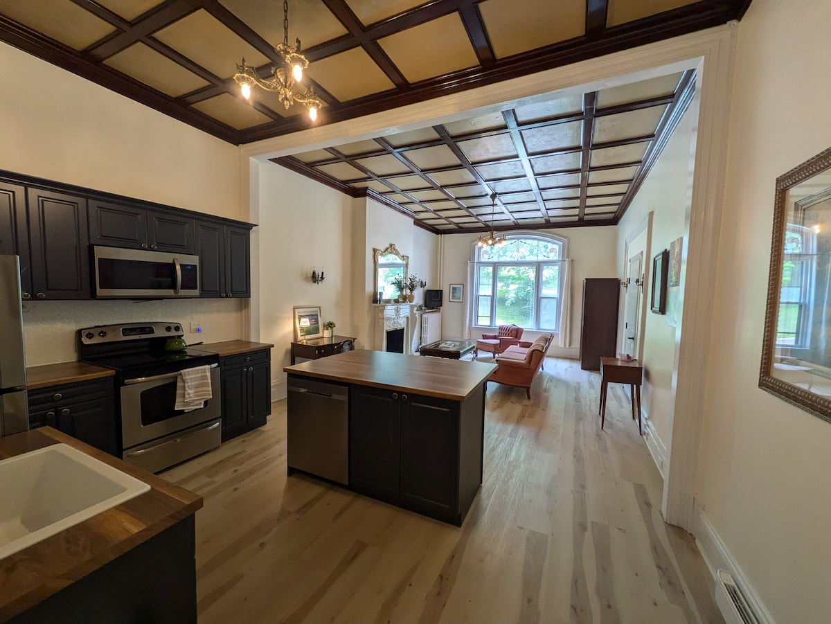 Ліфт підніме вас на верхній поверх цієї будівлі спадщини, розташованої на вулиці спадщини з деревами в найдавнішому місті країни. Тут ви знайдете супер унікальний апартамент з абсолютно новим усім - ліжка King і Queen Endy, сидіння для кохання та розкладний диван, повністю обладнану кухню та спеціальне робоче місце. Розташований в центрі всього, що може запропонувати Сент-Джон, ви всього в декількох кроках від міського ринку, станції TD, площі 506 та багатьох чудових кафе, ресторанів та барів.