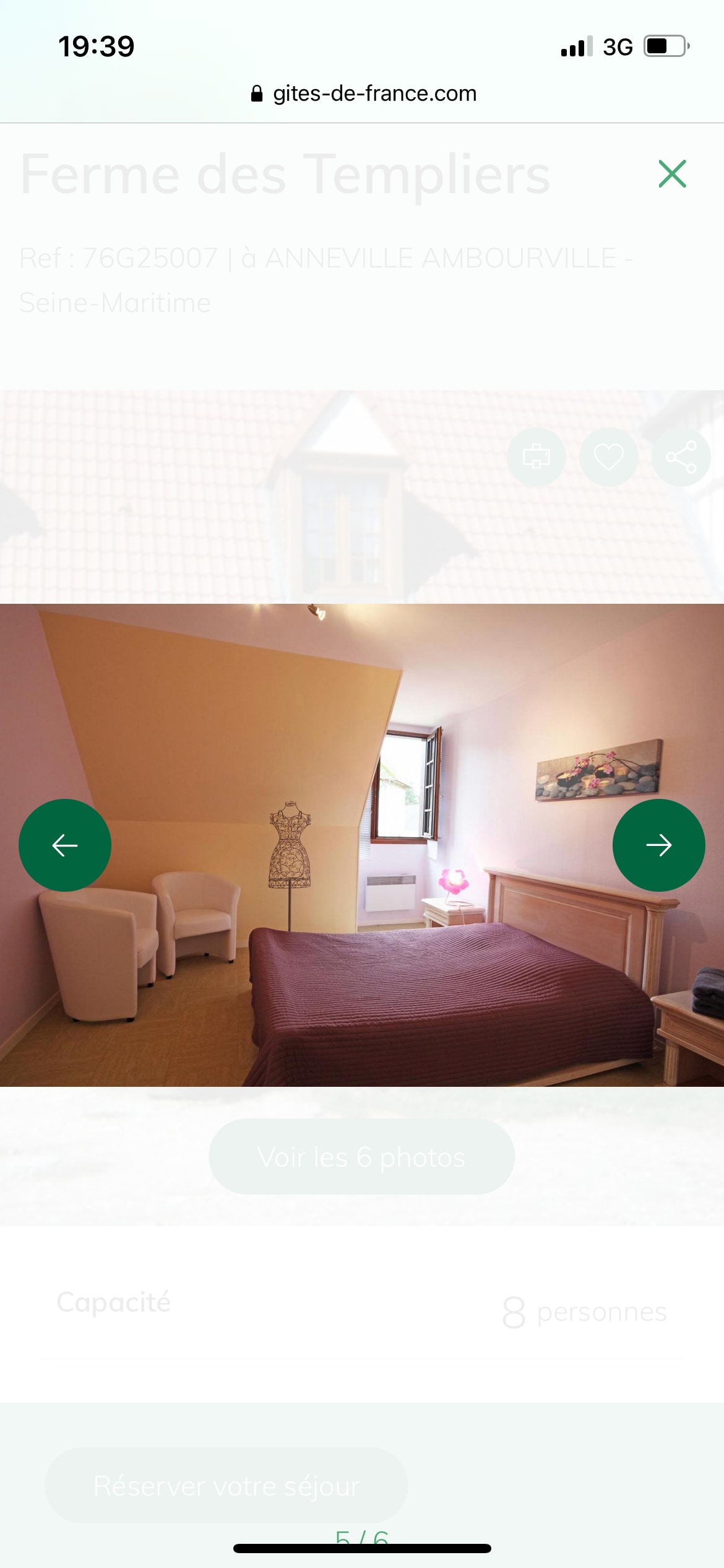З цієї кімнати, розташованої в 10 хвилинах їзди від Руана, відкривається неймовірний краєвид на Сену, що створює заспокійливу та яскраву атмосферу. Особливості дерев 'яних меблів роблять кімнату теплою елегантністю та коконом. У ньому можуть розміститися 1-3 людини, сніданок включений у вартість. У кімнаті є велике ліжко 160x200 та 1 односпальне ліжко 90x200. У ньому є окрема ванна кімната з туалетом.