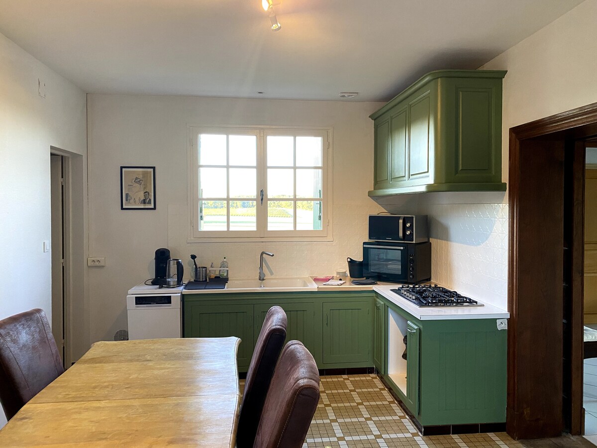 Тихо! «Le Logis Bellevue» розташований у нашому типовому будинку в Сент-Емільйоні, з окремим входом зі сходів! Приватна тераса з панорамним видом на місто, пам’ятки, долину Дордонь, замки та престижні виноградники. 15 хвилин від Лібурна, 30 хвилин від Бордо та 1 година 30 хвилин від Атлантичного узбережжя. Поруч із місцевими магазинами, ресторанами, розважальними закладами та громадськими парковками. Підходить для всіх типів мандрівників (туризм/бізнес)