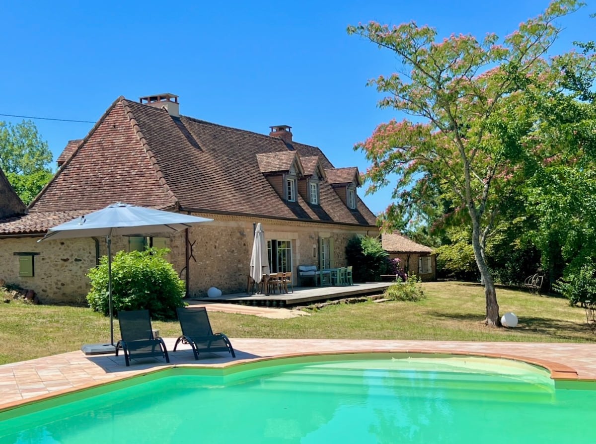Приїжджайте на осінньо-зимовий сезон 2025/6 зі знижкою 30%! (Вже застосовано) Чарівний фермерський будинок, розташований на 10 гектарах землі, у завидному місці з винятковими краєвидами. Бути насолоджуватися в будь-який час року. Шукайте орхідеї навесні; відпочивайте біля (спільного) безбортного басейну влітку; насолоджуйтеся смаженим м 'ясом і каштанами в каміні восени або затишно біля різдвяної ялинки з сім' єю взимку. Сен-Робер, одне з «найкрасивіших сіл Франції», знаходиться всього за кілька хвилин або за 20 хвилин ходьби.