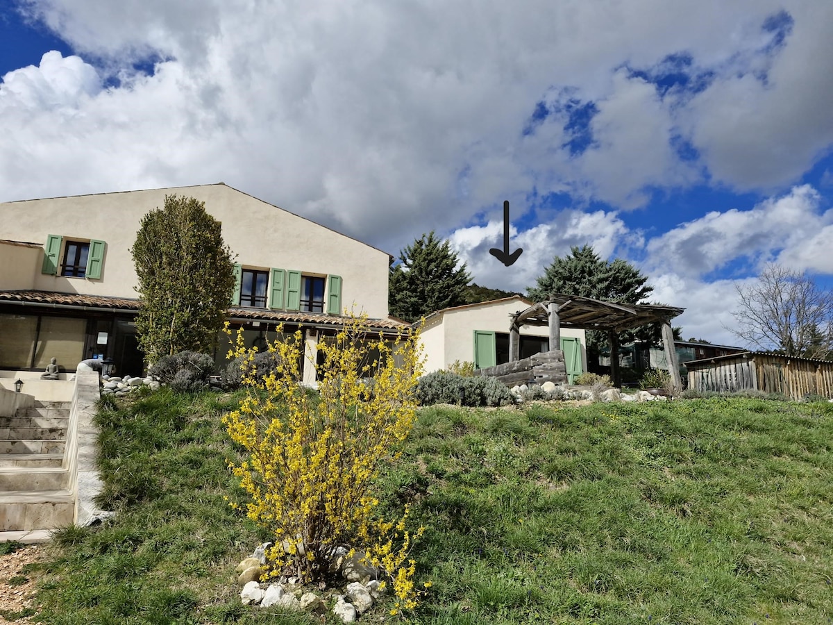 Обраний Послами Maisons de France регіоном Airbnb Прованс АльпиЛазурний Берег, наш маленький кокон також має мітку Valeurs Parc. Ідеально підходить для 2 осіб, відновлених за допомогою екологічних матеріалів (вапно, конопля, дерево, терракота), він дуже свіжий і здоровий: ідеальне місце для відкриття країни Вердон, між низькими ущелинами та лавандіновими полями, оточеними лозами та оливковими деревами. Ви можете насолодитися лиственничною терасою під доброзичливим відтінком смоковниці та виноградної лози.