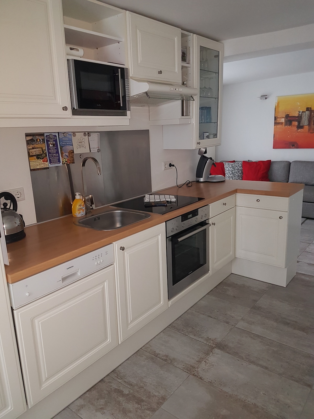 Наша квартира зручно розташована поблизу Дюссельдорфа. На автомобілі приблизно за 15–25 хвилин до Дюссельдорфа, Приблизно 30 хвилин до Кельна Тим не менш, вам не доведеться відмовлятися від розслаблюючих ночей, оскільки ми живемо дуже тихо. Усі торгові об 'єкти, розташовані неподалік. Завдяки власній кухні ніщо не заважає здоровому та смачному початку дня. З нетерпінням чекаємо на власну новозбудовану ванну кімнату в 2022 році, щоб закінчити напружений день.
