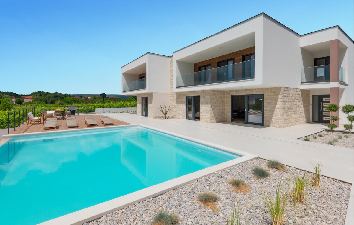 Ця простора і стильна вілла для відпочинку розташована на огородженій ділянці в невеликому селі на далматинських пагорбах і ідеально підходить для приємного сімейного відпочинку. Вона складається з першого поверху та першого поверху, з 'єднаних між собою внутрішніми сходами. Перед будинком розташована тераса з літньою кухнею та барбекю, де можна приготувати власні спеціальності. Ви можете подивитися на спекотні літні дні в басейні, в той час як ви можете скоротити час на першому поверсі в wirpool.