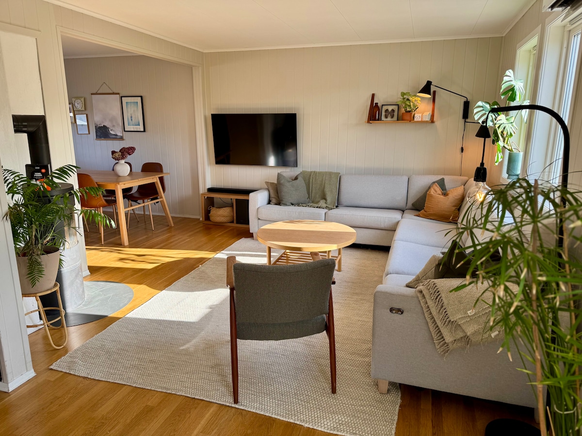Nærhet til sjøen som du sjelden får. En unik mulighet til å slappa av med sjølivet, både innenfra og utenfra. Nydelig skjærgård som må oppleves. Følger med kajakk og Sup-brett, som vil gi deg/dere en rik naturopplevelse. . Ønsker du å fiske, så ligger alt til rette for det. Flotte turløype rett utenfor døren. 3-minutt med bil til nærmeste butikk og 10 minutt med bil til nydelig badestrender. (Åkrasanden) Nydelig plass