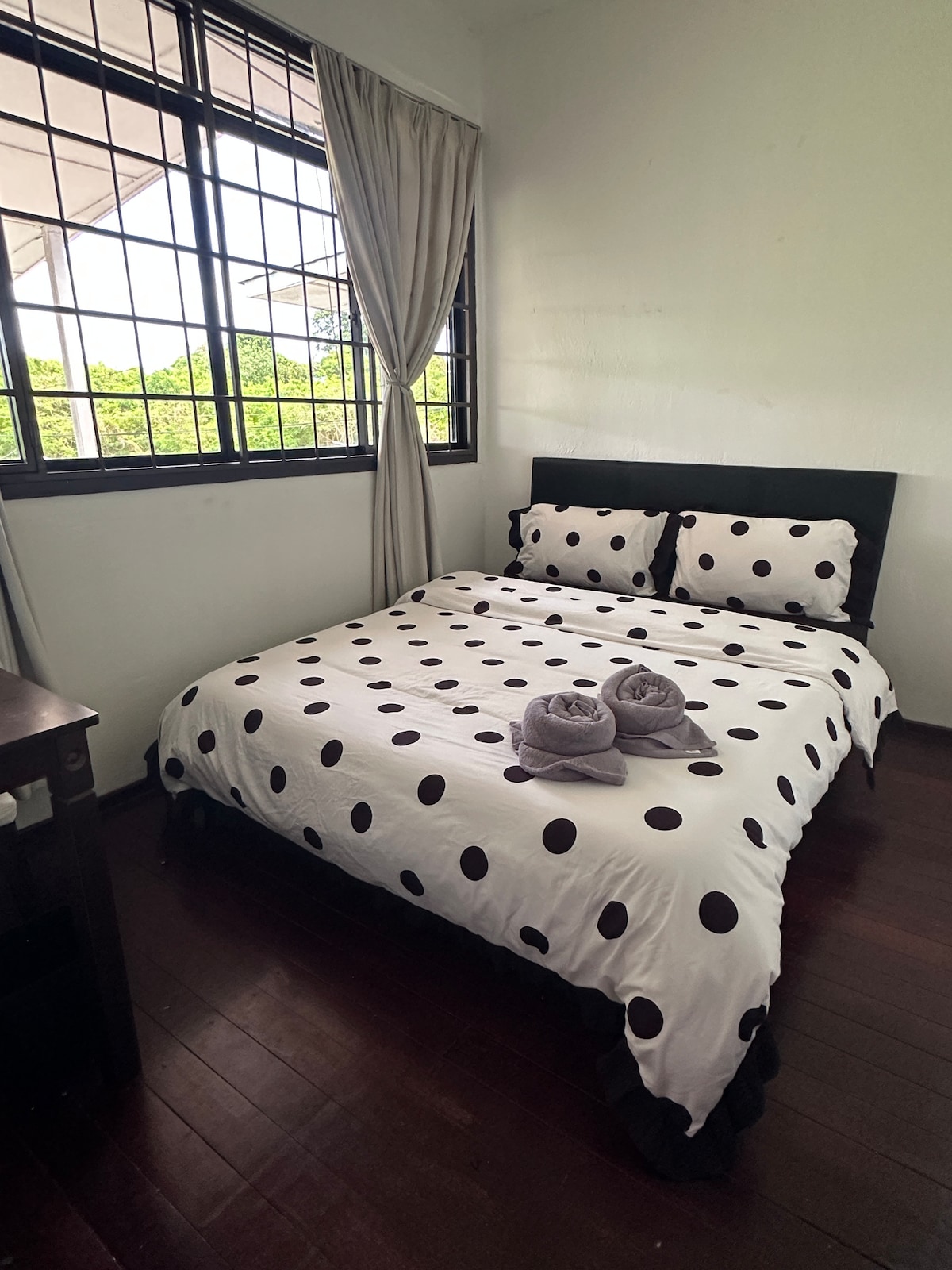 The house is around 10 minutes walk away from the jetty. 2 parking lots and private entrance available for each house. Each house with 2 rooms, 1 Queen bed room and another room with 2 single beds with basic amenities. Private living room, kitchen and toilet in each premise. Feel free to contact us if you need help with airport transportation, island hopping or diving booking.