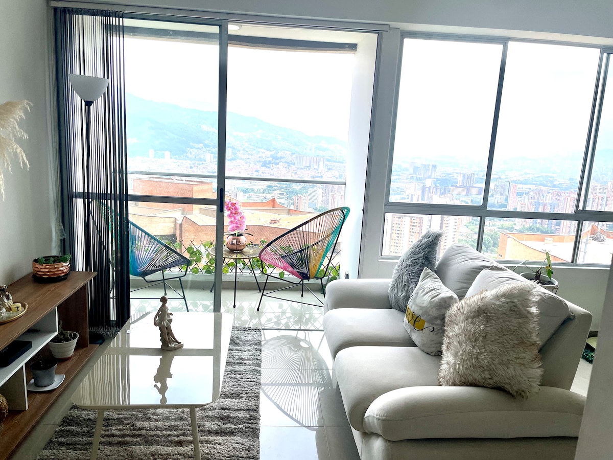 Відпочиньте в цьому унікальному й спокійному помешканні. Помешкання, де можна насолоджуватися краєвидом на місто Медельїн. Де ви можете скласти всі свої туристичні плани та відпочити в тихому, безпечному місці. Проїдьте транспорт, який з 'єднає вас із метро Медельїна менш ніж за 3 хвилини. Це також місце, де можна будь-коли здійснювати екологічні походи. У будівлі є загальний тренажерний зал.