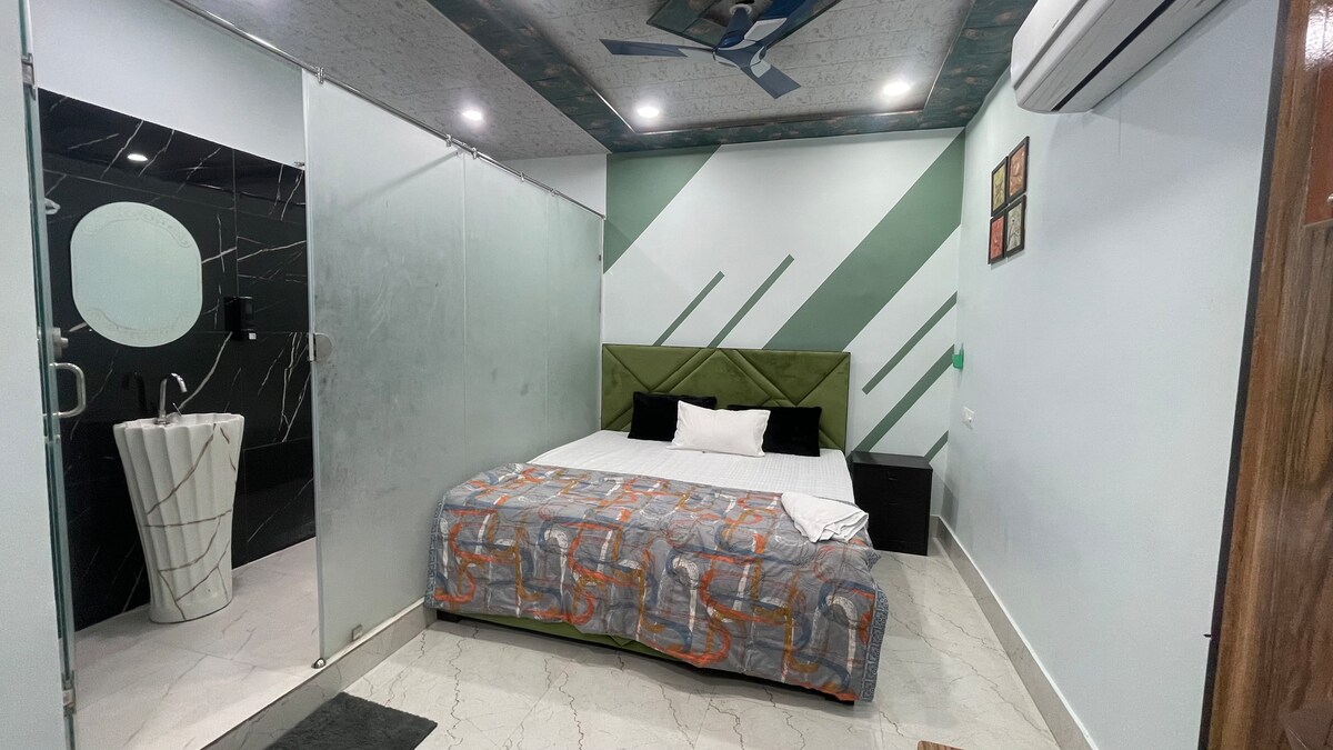 Modern Interiors. There is Hot/Cold AC with filtered running water. 5G Wifi and all essential services just one call away. Fully furnished Kitchen, Study Table, Sofa cum Bed washing Machine 2 beautiful Washrooms I'm always available to make your stay hassle free and memorable .....:) Unmarried couples are prohibited 🚫 by local authorities Look forward to welcoming YOU