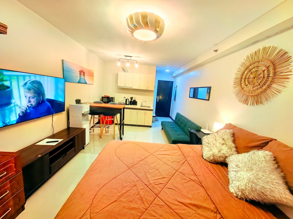Створіть найяскравіші спогади в нашому помешканні, натхненному теракотою, з балконом з видом на загадковий басейн. Помешкання розташоване неподалік від CCLEX, який швидко доставить вас до серця міста Себу. Ваше перебування знаходиться буквально в декількох хвилинах ходьби від аеропорту , бізнес-центрів, спа-центрів, ринків, ресторанів і пляжів у Мактані. Кімната подарує вам враження від відпочинку на курорті з мінімалістичним шикарним штрихом. Ви можете готувати на міні-кухні , користуватися пральною машиною та зберігати товари в нашому повнорозмірному холодильнику.