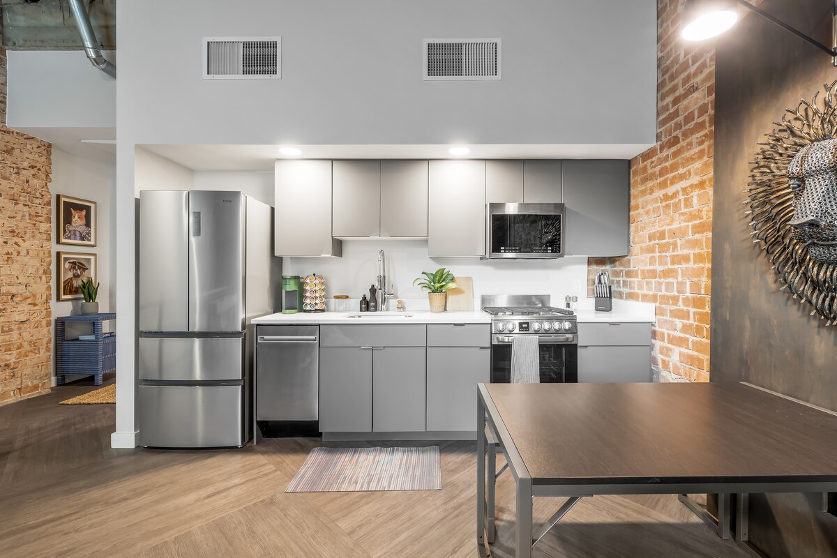 Відремонтований лофт у центрі міста, свіжий і фанковий стиль із достатньою кількістю місця для відпочинку, роботи або відпочинку. Окрема кімната з сучасною ванною кімнатою, плюшевою спальнею, новою кухнею та чудовою вітальнею на верхньому поверсі. Плюс приватний парадний вхід чудово підходить для паркування велосипеда, фарбування або фізичних вправ. Приватний задній двір, щоб насолоджуватися погодою, і багато веселого громадського простору, чудово підходить для спілкування, барбекю та ігор!