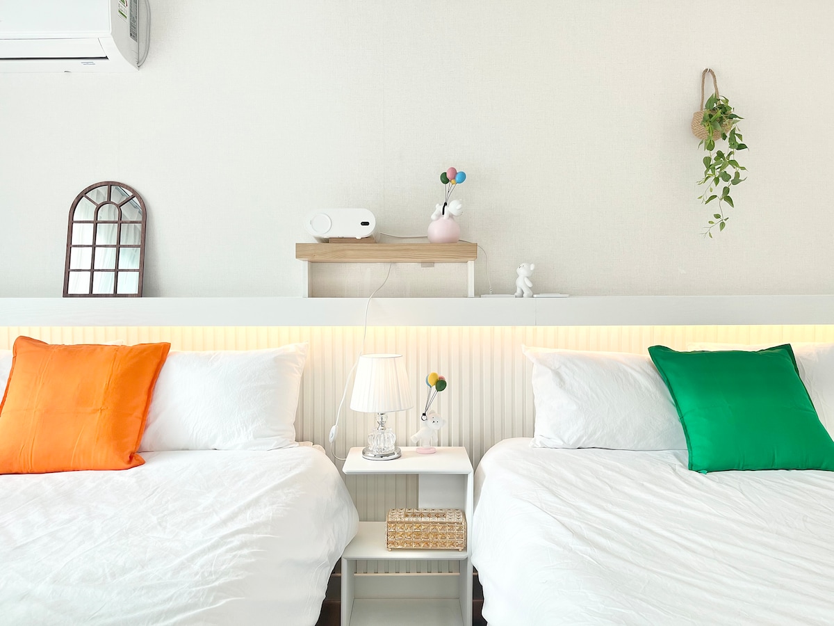 Поряд із ринком🌊 Міллак розташоване помешкання, з якого можна побачити міст Гванган і море! Звідси відкривається найкращий краєвид на🌊 Квананлі, а також на міст Кванан. Це 🌊 чисте і приємне нове помешкання з достатньою кількістю місця, емоційними аксесуарами в інтер’єрі та різноманітними зручностями. Ми щодня перемо постільну білизну в найкращих умовах у🌊 готелі. Розташоване в 3 хвилинах ходьби🌊 від пляжу, ви можете комфортно і приємно перебувати подалі від шумного центру міста. У 🌊 будівлі є безкоштовне паркування. 🌊Стандартна кількість осіб: 2, максимальна кількість осіб: 5–6 (надається наматрацник, диван-ліжко, додаткова постіль) 2 🌊спальні, вітальня, ванна кімната, дамська кімната, пральня 🌊Душова кімната відокремлена. 🌊Прибуття: 16:00 Виїзд 12:00 (Поруч є магазин зберігання перевізників.) У помешканні є 🌊дитячі крісла:) - Це помешкання зареєстроване та експлуатується як юридична компанія для спільного проживання в межах країни, за винятком особливого випадку Mister Mansion!