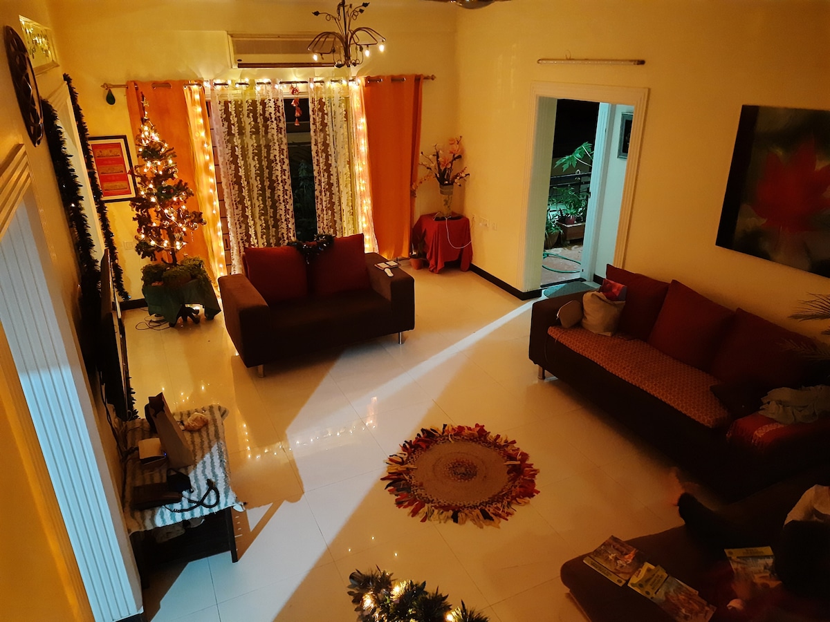Welcome to 'The Manyata Nest', a private & peaceful 1BHK apartment perfect for solo travellers, couples, or professionals. Enjoy our festive Christmas tree & decor! You'll have everything you need: - Private Balcony - Dedicated Workspace - WiFi with power backup - Smart TV - 3-in-1 Mood Lighting - Kitchen with Essentials - Washing Machine - Fridge & Drinking Water - Emergency LED Lights - Hair Dryer & Geyser - Iron & Wardrobe LOCATION: 4 mins to Manyata Tech Park | 5km to Phoenix Mall of Asia