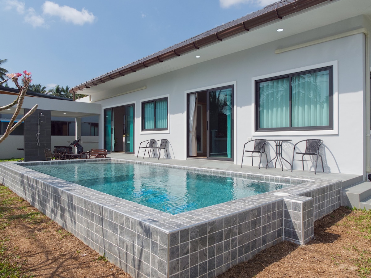 Приватна сімейна вілла з басейном – поблизу визначних місць Аонанга Насолодіться простою приватною віллою, ідеальною для сімей, з приватним басейном, пишним садом і повністю обладнаною кухнею. Всього в 5 хвилинах від пляжу Ао Нанг, пірсу Ноппаратхара та нічного ринку Ао Нанг, це ідеальне місце для пляжних поїздок, екскурсій по острову та місцевих ресторанів. Вілла пропонує повну конфіденційність і спокій, особливо для сімей з дітьми. Поєднуючи комфорт, розташування та зручність, це ваш ідеальний приватний відпочинок.