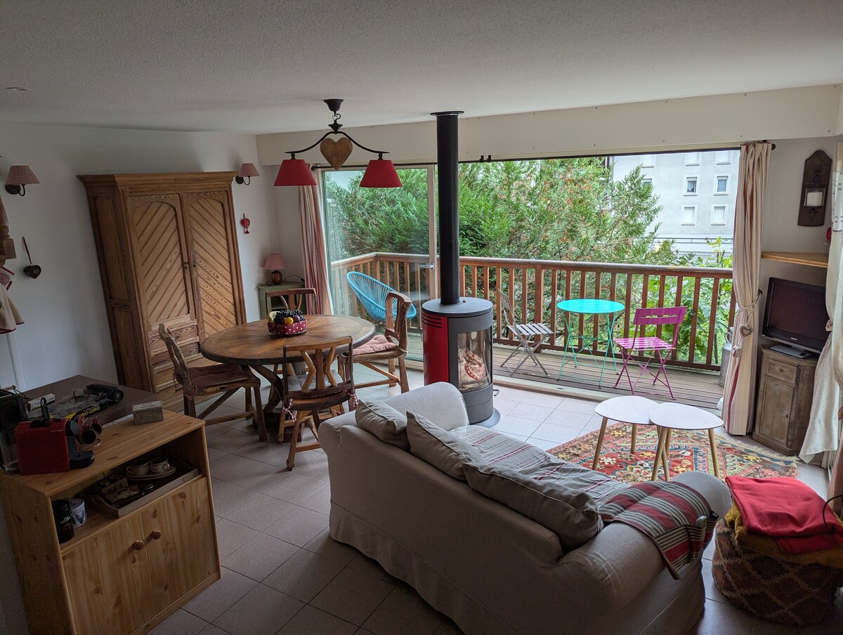 Ravissant petit chalet au calme d'une impasse et pourtant proche à pied, du centre village. Composé de deux chambres et d'un coin lecture, avec une belle vue dégagée sur la montagne. Place de parking dans la résidence sécurisée. Proche de la navette pour l'accès aux télécabines et téléphérique. Le linge de maison est à apporter.