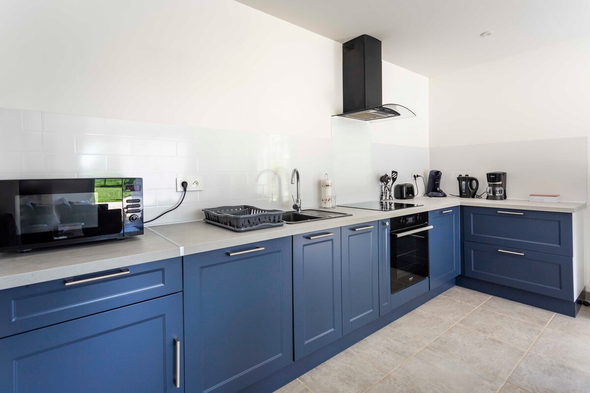 Світла та простора квартира-студія відкритого планування з приватним басейном і швидким Wi-Fi. Великий телевізор із французьким Amazon Prime і UK Freeview. DVD-програвач, ігрова консоль Wii та аксесуари. DVD-диски та настільні ігри французькою та англійською мовами. Кухонна зона з плитою, мікрохвильовою піччю та аерофритюрницею для приготування легких страв. Нещодавно облаштована душова кімната, суміжна. Великі скляні двері відкриваються на сонячну мебльовану терасу з барбекю, звідки відкривається краєвид на озеро та лісові масиви. Приватна парковка Багато пішохідних/велосипедних маршрутів від помешкання