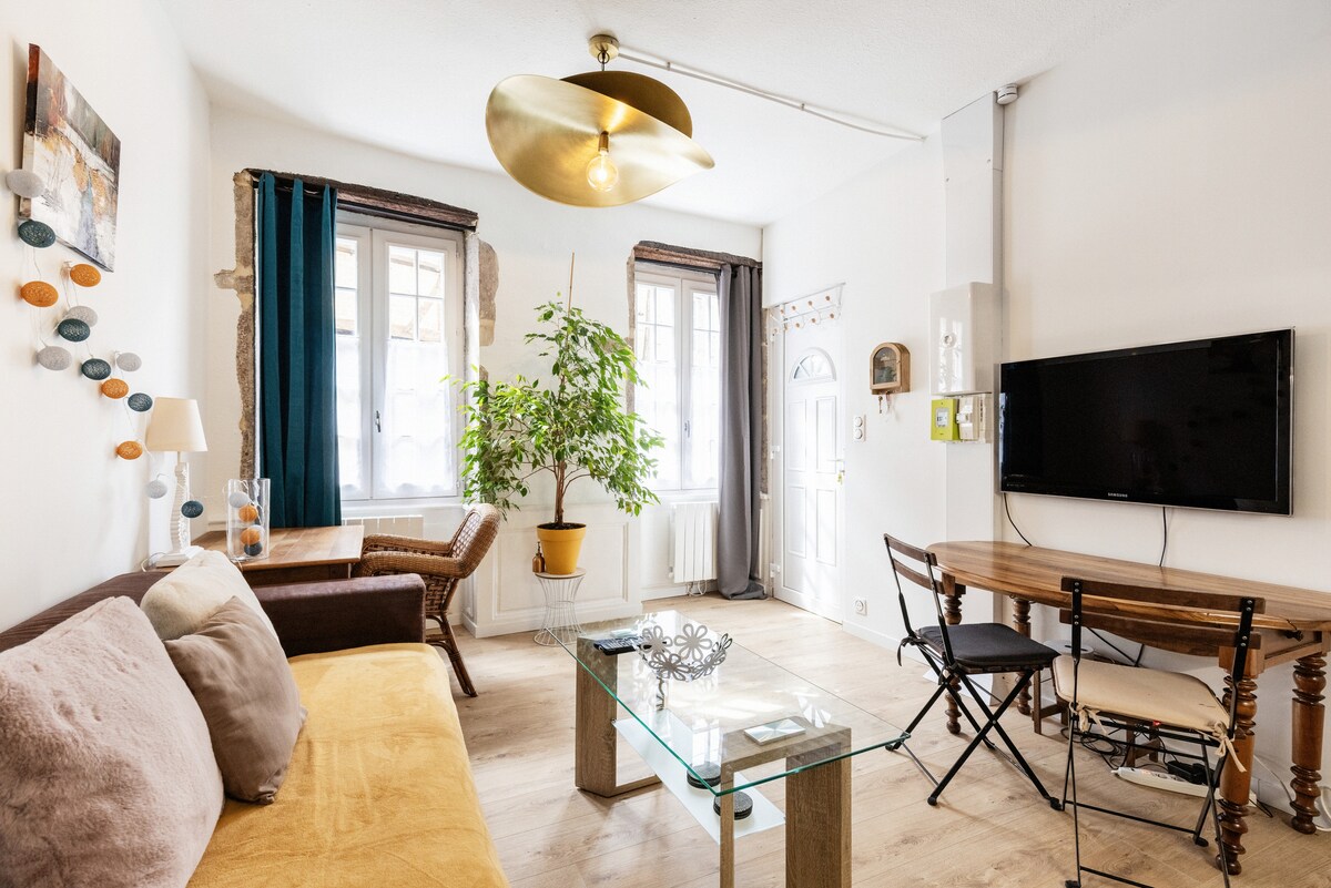 Незалежна студія на нашій території в центрі міста Бур в Брессі, водночас затишна сільська місцевість і розкіш паркування безкоштовно. Відкрийте для себе цей оазис спокою, розташований поруч із перерахованим об 'єктом із французькими пам' ятками. Чарівна тиха студія площею 32 квадратних метри, центральне розташування, одяг до театру та ринку. Мебльований і відремонтований з чудовим смаком для любителів романтичної атмосфери.