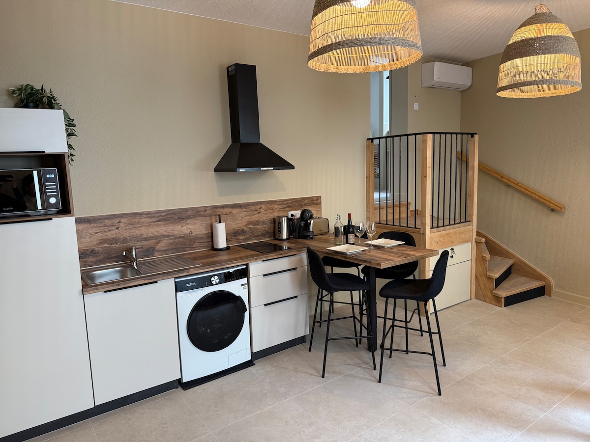 Ласкаво просимо до нашої чарівної затишної квартири в Cournon d 'Auvergne! Розташовано в 5 хвилинах від Зеніту Курнон д'Овернь. Насолоджуйтеся спокійним перебуванням з парковкою поблизу та легким доступом до громадського транспорту. Наше ретельно обладнане помешкання пропонує вам всі необхідні зручності, з розкішним враженням із приватним спа-салоном і великим душовою кабіною. Насолоджуйтеся 200-сантиметровим плоским екраном для захоплюючого кінематографічного досвіду