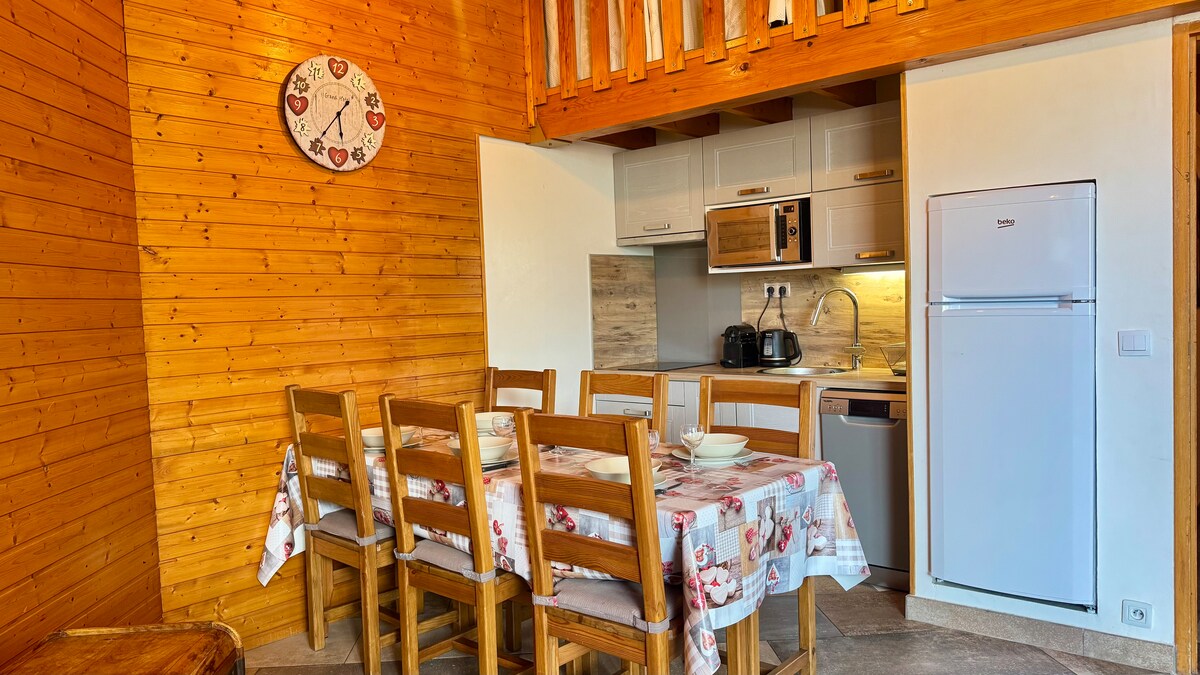 Розташована на першому поверсі нещодавньої резиденції, наша квартира площею 45 м2 має терасу та ідеальний сад для дітей, які будуть грати під наглядом батьків! Резиденція Les Cristallines*** розташована в центрі: менш ніж за 250 м від центру курорту та доступ до доріжки (через ескалатори, вона ще швидша!), а також прямо перед садом Піу-Піу. У резиденції також є консьєрж і тепла спільна кімната з більярдом, каміном та панорамною терасою!
