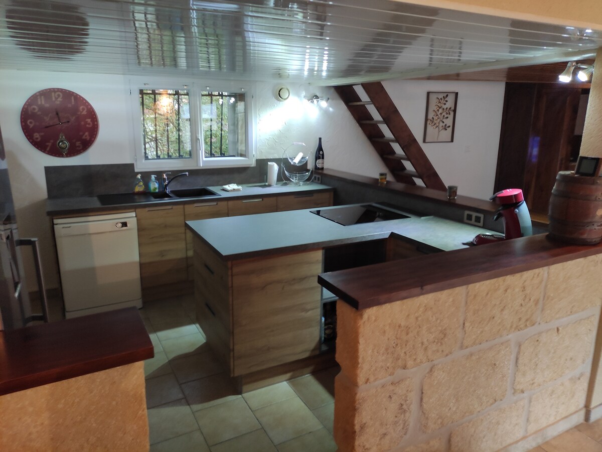 Кам 'яний сільський будинок, повний шарму і дуже приємний для перебування, тераса площею 45 кв. м, гараж на 2 автомобілі. Кухня повністю відремонтована у вересні 2021 року. Кавоварка Senseo. Не проживаючи на території (в 10 хвилинах ходьби), ми, тим не менше, можемо задовольнити ваші потреби протягом усього вашого перебування та привітати вас після прибуття. Самостійне прибуття або пізнє прибуття можливе за допомогою сейфа для ключів.