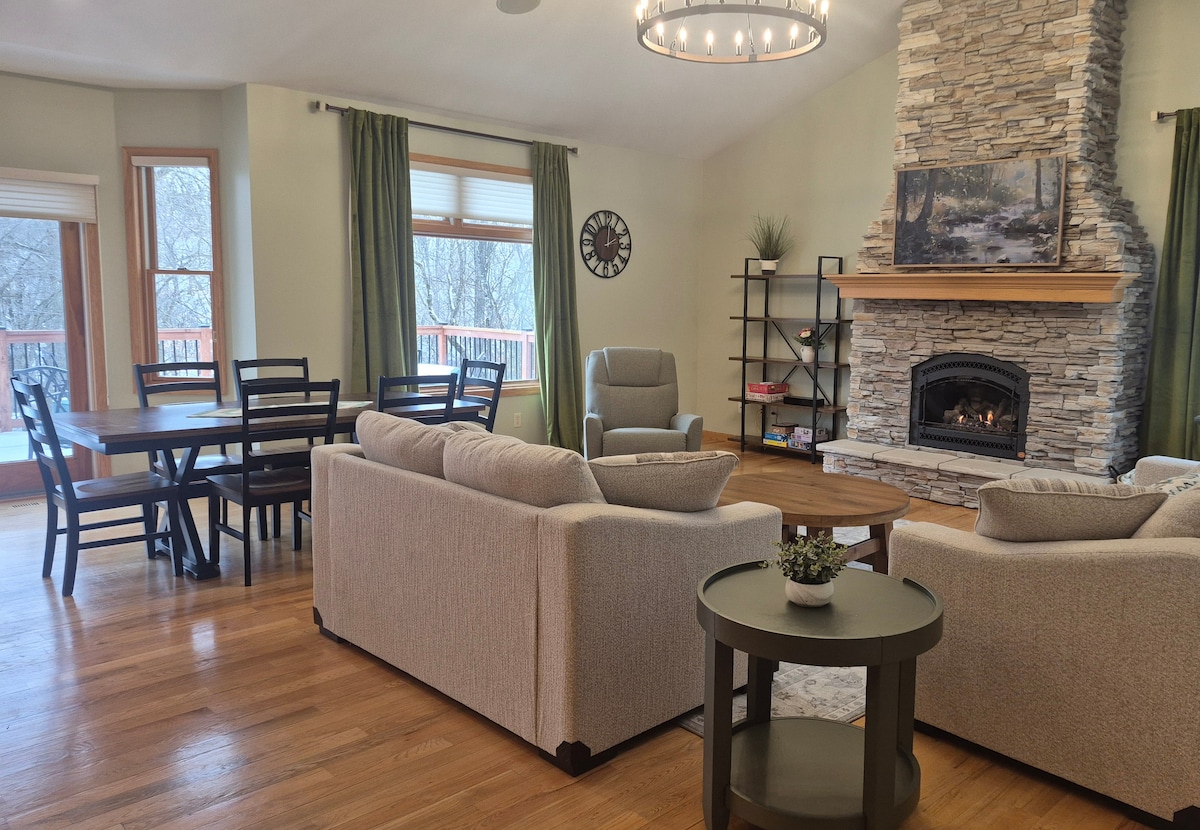 Ласкаво просимо до Phil's Place – сучасна розкіш вітає вас від мережі зовнішніх пішохідних доріжок, прилеглих парків і ставків, а також гідромасажної ванни (промо=БЕЗКОШТОВНО!) Повністю новий інтер'єр, підігрів підлоги у ванній кімнаті, система з трьома душовими лійками з дощовою лійкою, міні-кухня з гранітними стільницями - безкоштовне вино та вода доступні за запитом, газовий камін, розкішні матраци, 65-дюймовий телевізор Sony з додатком, секція з високоякісної шкіри з трьома секціями для відпочинку освіжать вас та зарядять енергією для наступної пригоди!Бездоганно – перегляньте відгуки!