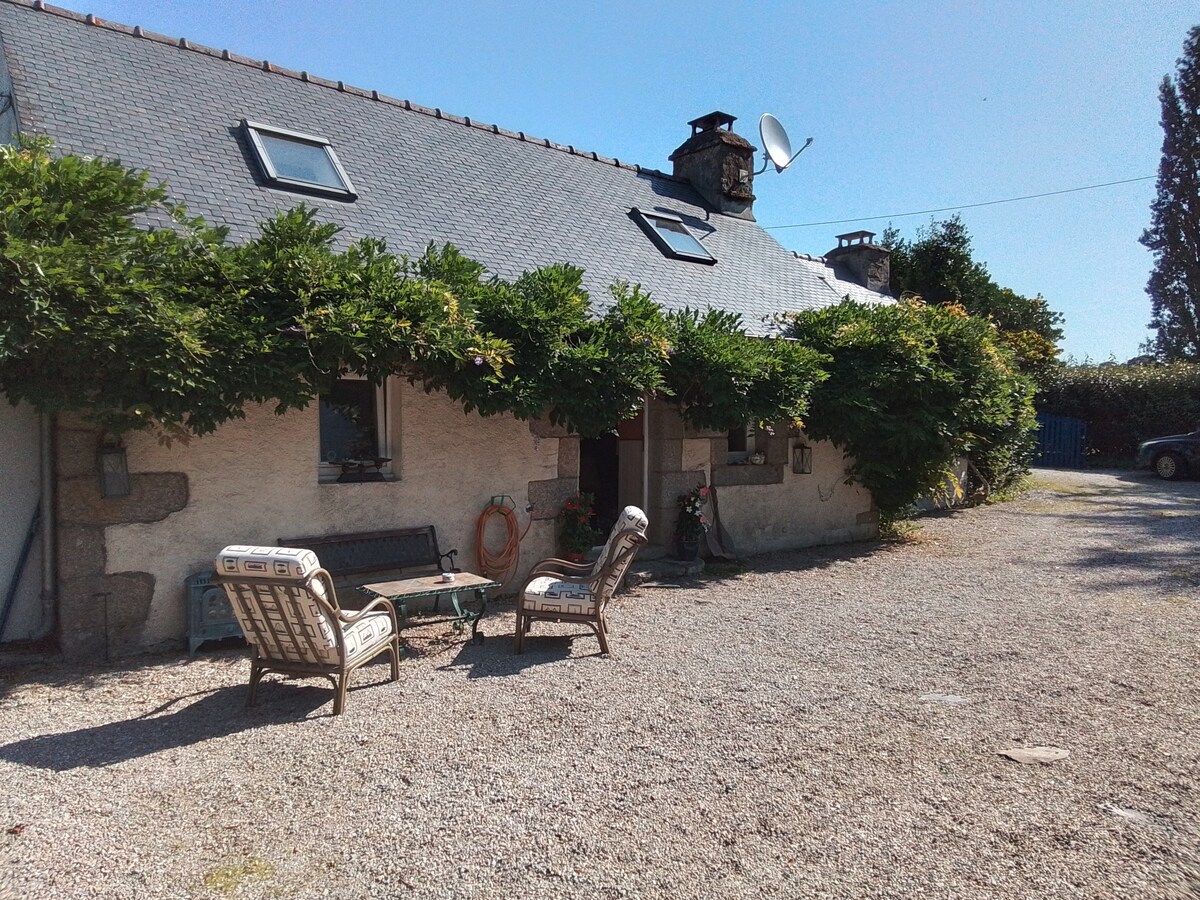 Невеликий тихий довгий будинок у обстановці зелені та спокою. Сад із альтанкою та підвісними довгими стільцями. Дров 'яна піч прикрасить тепло під час вашого перебування. На першому поверсі обладнана кухня з вітальнею та дров 'яною піччю, обідньою зоною та душовою кімнатою. Нагорі на мезонініні, ліжко 160 см 10 хвилин від озера Гередан та історичного міста Понтіві та недалеко від каналу від Нанта до Бреста. На вас чекають історичні екскурсії та спортивні заходи.